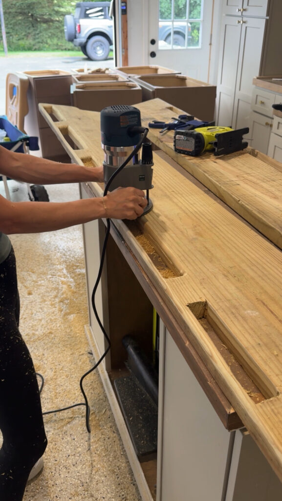 I had no idea how to build a ladder, so I decided to wing it! I made my own railing and steps with 2×8 boards, then I decided it would be could to cut out holes along the sides for the handles. I routered all the edges and sanded everything smooth… y’all it turned out even better than I imagined! I love how that handle is built into it. It feels so whimsical makes my heart so happy.