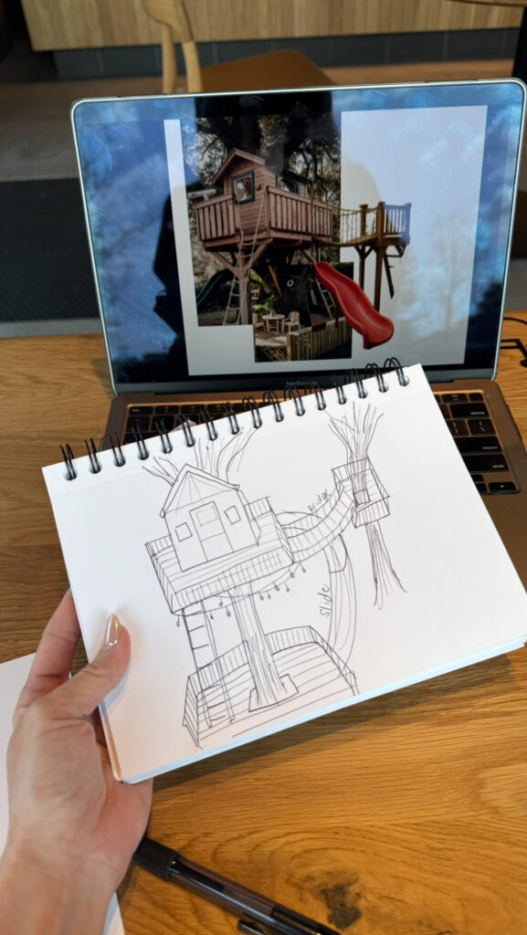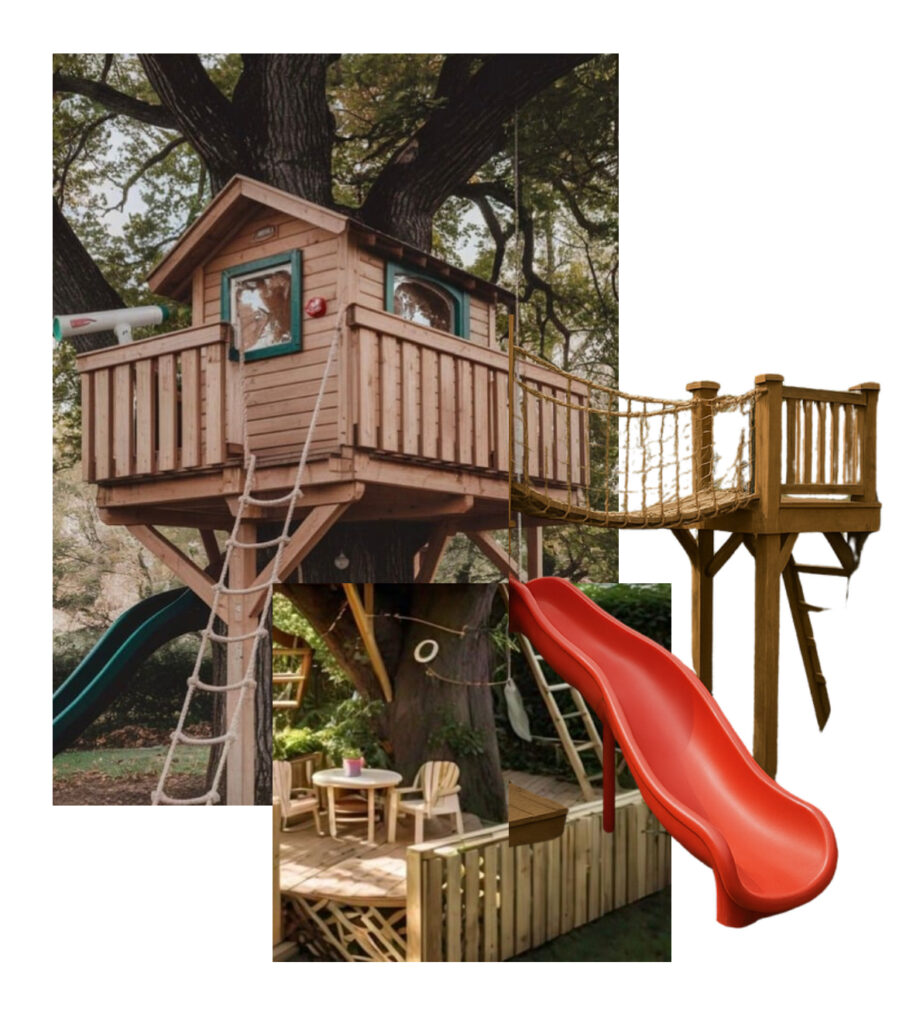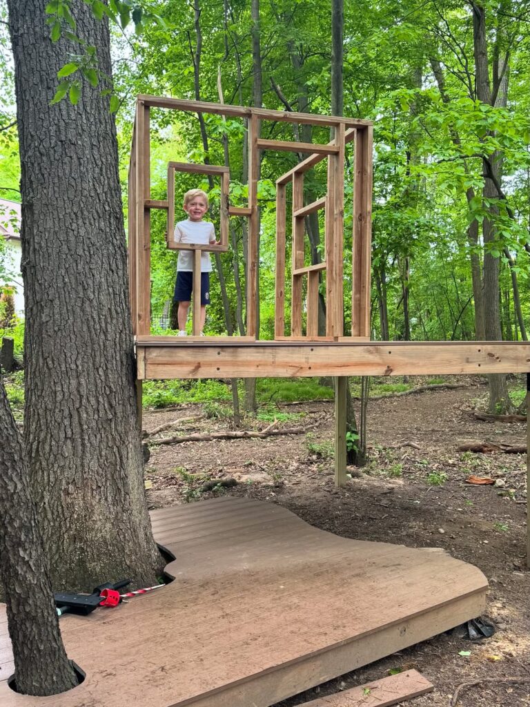 The dream was to build a one-of-a-kind treehouse for my boys completely from scratch with a whole lot of imagination. I asked the boys what they would want in their treehouse and prayed I wasn’t dreaming outside of my skill set. We ultimately decided on multi-platform treehouse layout that would be connected by a bridge, with slide coming off the side. I had no blueprints, or treehouse building experience, but I was determined to make this dream a reality.